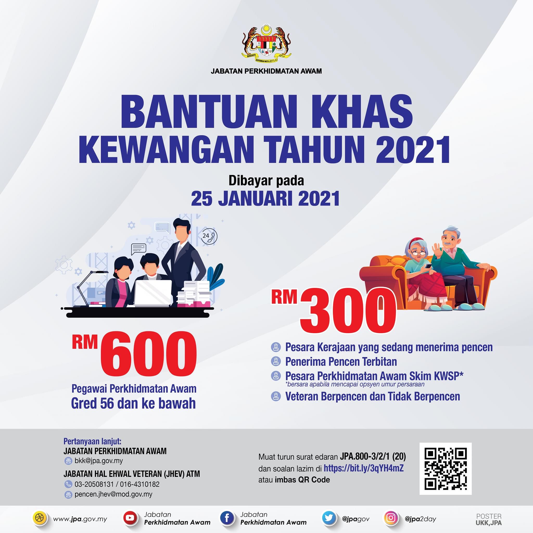 Bantuan Khas Penjawat Awam Rm600 Dibayar 25 Januari 2021